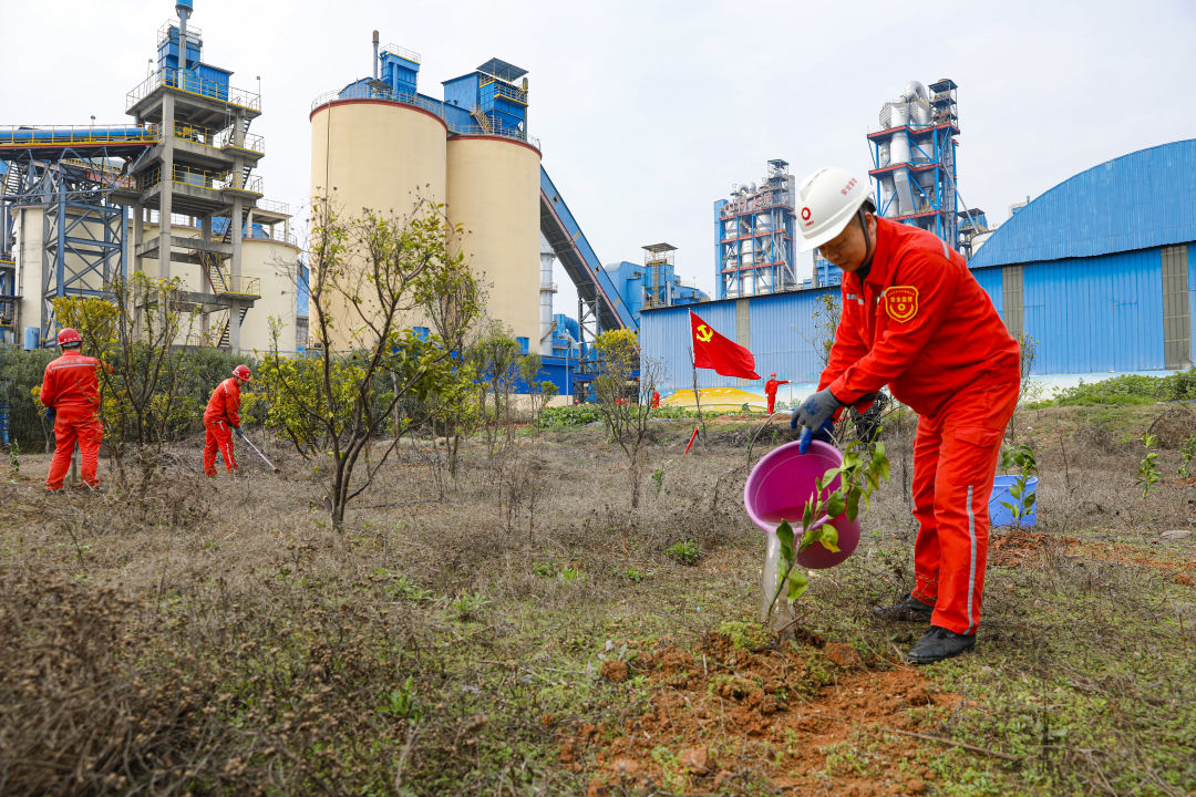 叶城天山水泥、喀什天山水泥、中材罗定公司组织员工在生产厂区绿化区栽种苗木、树木,对果园内的苹果树进行移植,为创建绿色工厂贡献力量。